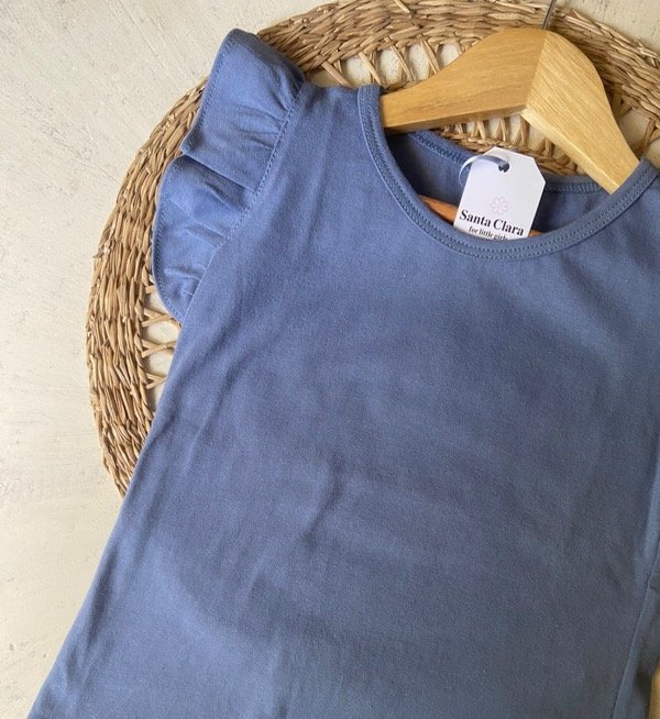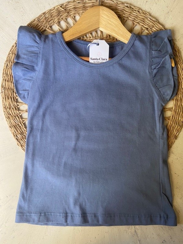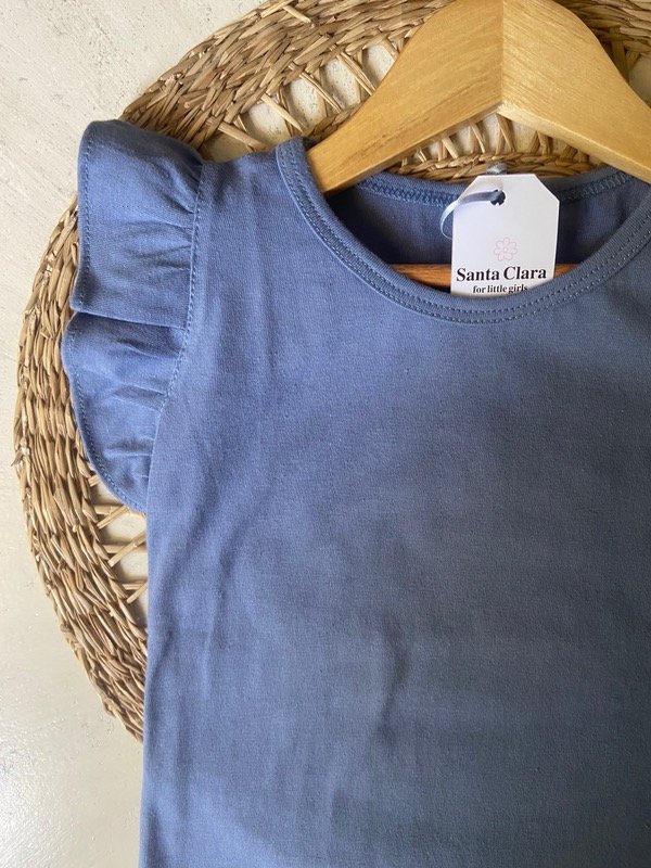 Remera de algodón color azul con voladitos en las mangas